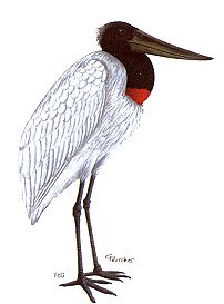 Identificatie Zeer grote ooievaar met wit verenkleed (incl. vleugels en staart) en naakte zwarte kop en nek. Aan de basis van de nek een kale rozerode vlek.